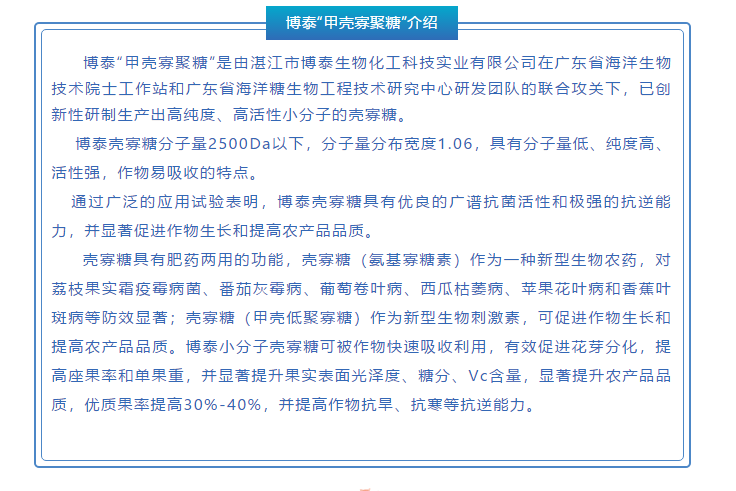 博泰“甲殼寡聚糖”應(yīng)用于農(nóng)作物生長方面的作用