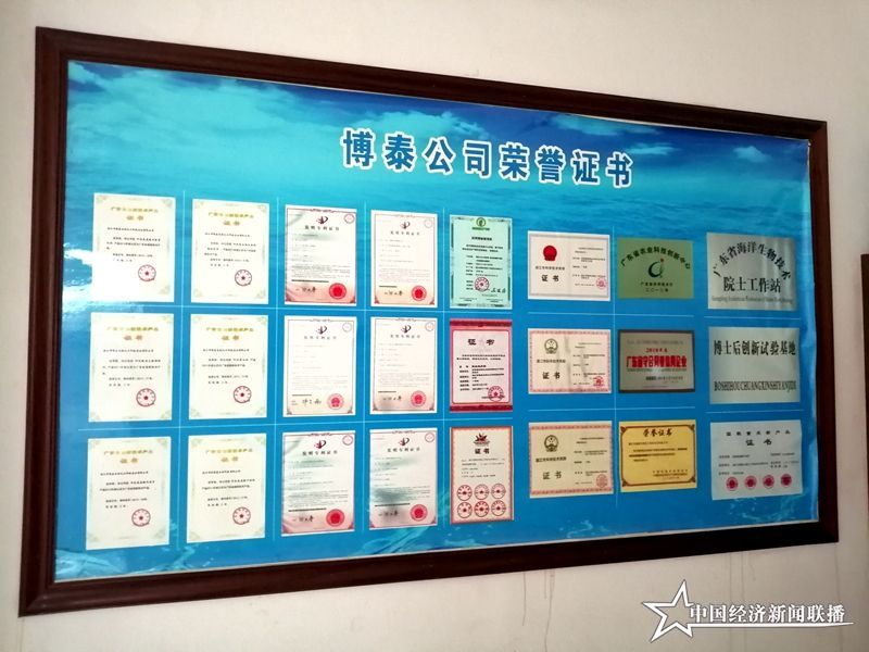 記者在一樓大廳的墻上看到滿墻的海洋產(chǎn)品開(kāi)發(fā)的各種榮譽(yù)證書(shū),更是對(duì)這個(gè)海洋生物產(chǎn)品前景不敢小看,同時(shí)也對(duì)這家致力于海洋生物資源研發(fā)、生產(chǎn)的博泰集團(tuán)賦予了海洋生物對(duì)土壤的重大貢獻(xiàn)敬佩不已。